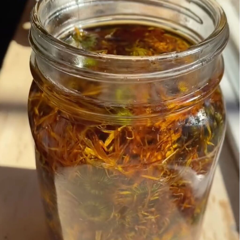 2. Pour your carrier oil over the herbs until fully covered (leave ½ inch at the top).