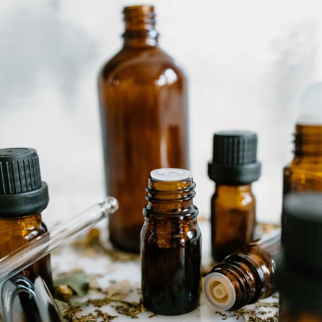 Once your herbal oil is ready, enhance it with essential oils known for skin health and hormonal balance: